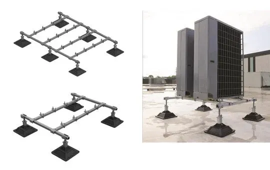 Das dama-tec Dachmontageset eignet sich hervorragend zur Aufständerung von Klima- und Lüftungsgeräten auf Flachdächern.