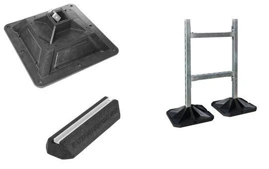 Die Dämpfungssockel, auch als FIX-IT-Foot bekannt werden zur Montage von Rohrleitungen, Kabeltrassen und Lüftungskanälen auf Flachdächern eingesetzt. Sie sind an der Oberseite mit einer Aluminiumprofilleiste 40 x 20 mm ausgestattet die eine einfache Befestigung der Installationen am Fuß ermöglicht. Die FIX-It-Foot Produkte bestehen aus langlebigem recyceltem Gummi. Dieser wirkt erschütterungsdämpfend.