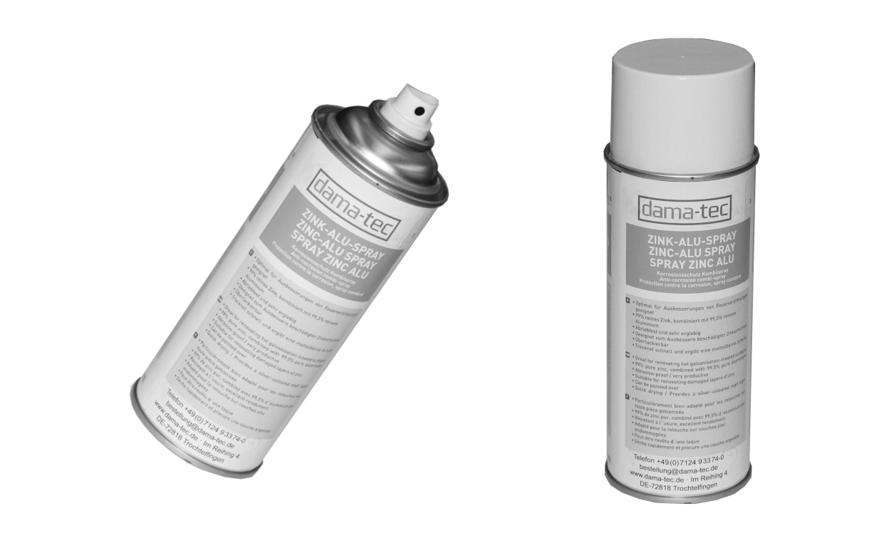 Das dama-tec Zinkspray in hell-brillant dient zur Nachverzinkung verschiedenster Metalle. Es ist schnelltrocknend und hat eine hohe Deckkraft. Wichtig ist bei der Verarbeitung, dass der Untergrund trocken, öl- und fettfrei, sowie frei von Staub, losen Anhaftungen und Rost.