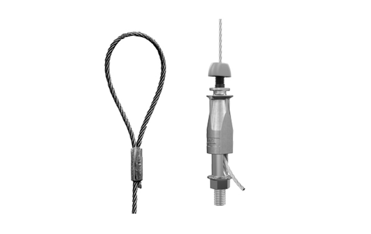 Gripple Drahtseilabhängesystem UniGrip Seitenausgang mit Schlaufe (FR) für zahlreiche Installationen im Lüftungs- und Elektrobereich.